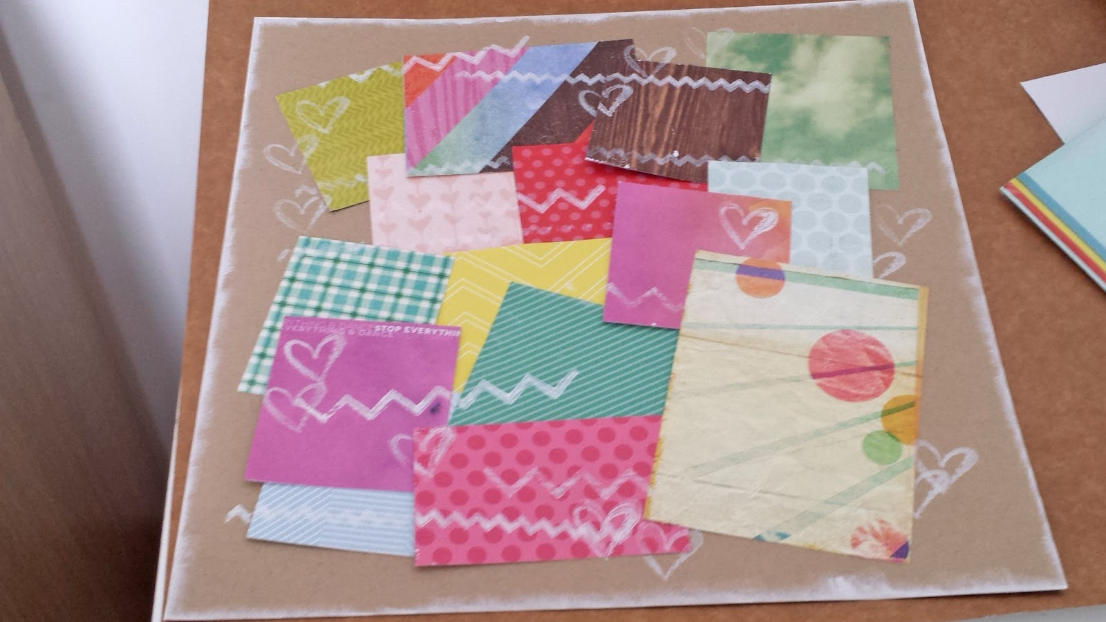 A idéia é que a colagem fique com essa cara, com os papéis com algumas pontas soltas e levantadas.