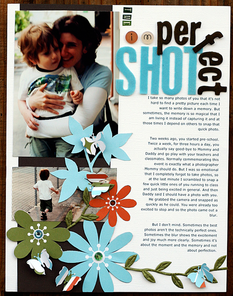 • Cubra os espaços que não quer mostrar: Se a foto impresssa tem uma parte queimada ou borrada, ou há elementos de fundo que distraiam o leitor, ou ainda a foto tenha um grande espaço para passear os olhos, você pode habilmente cobrir essa parte com um enfeite, o título, uma transparência, ou algo que te pareça adequado. Se há partes brancas na foto, você pode escrever seu journaling nessa área, e dar a impressão que isso foi feito de forma deliberada.