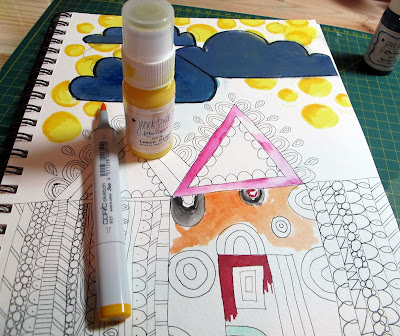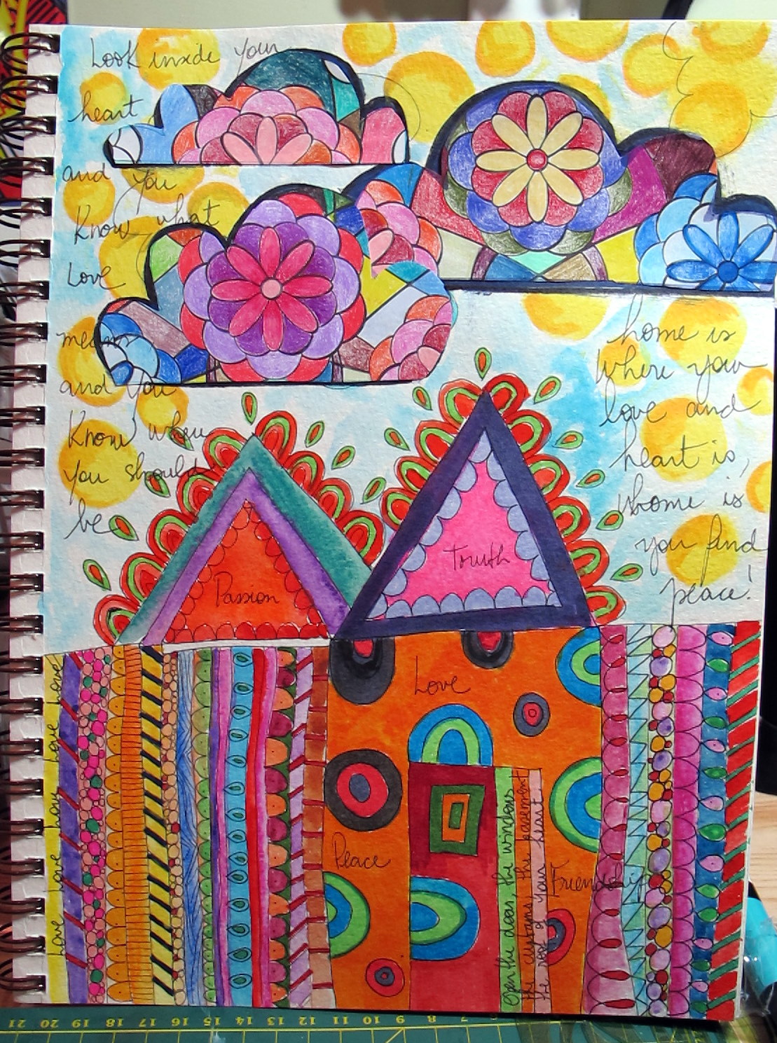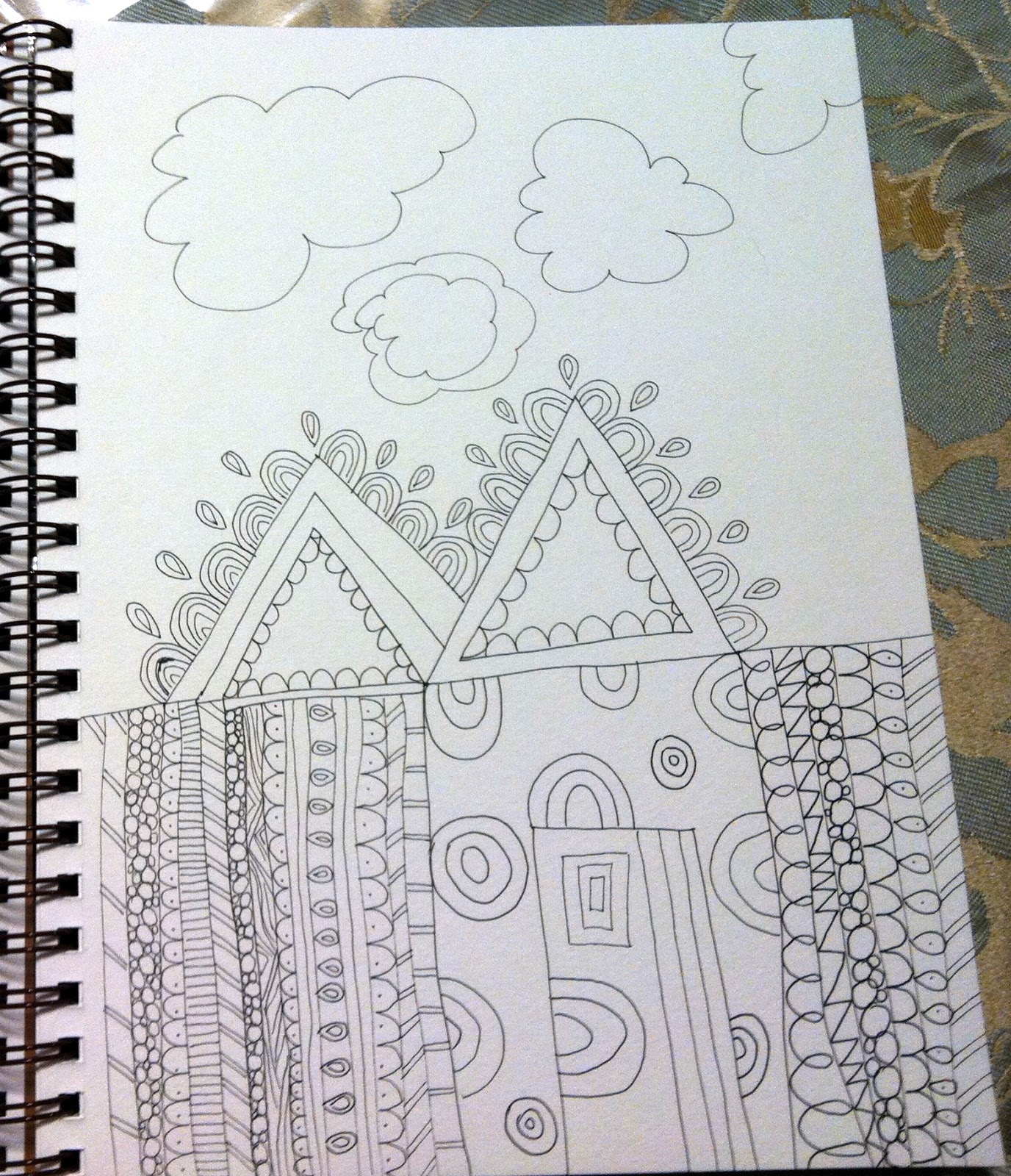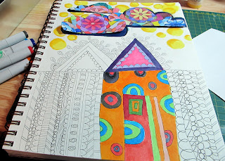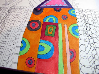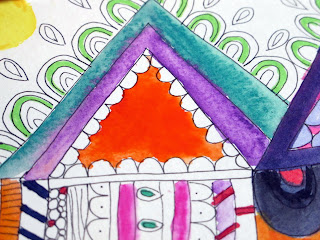 Agora eu vou mostrar um tiquinho de um desenho que eu fiz que estava meio parado e resolvi colorir para voces verem. Meu marido um dia falou assim...voce so desenha flores...hunf!!!!!!!! magoei...ahaha Entao resolvi fazer umas casinhas com uns doodles totalmente sem expectativa de nada.