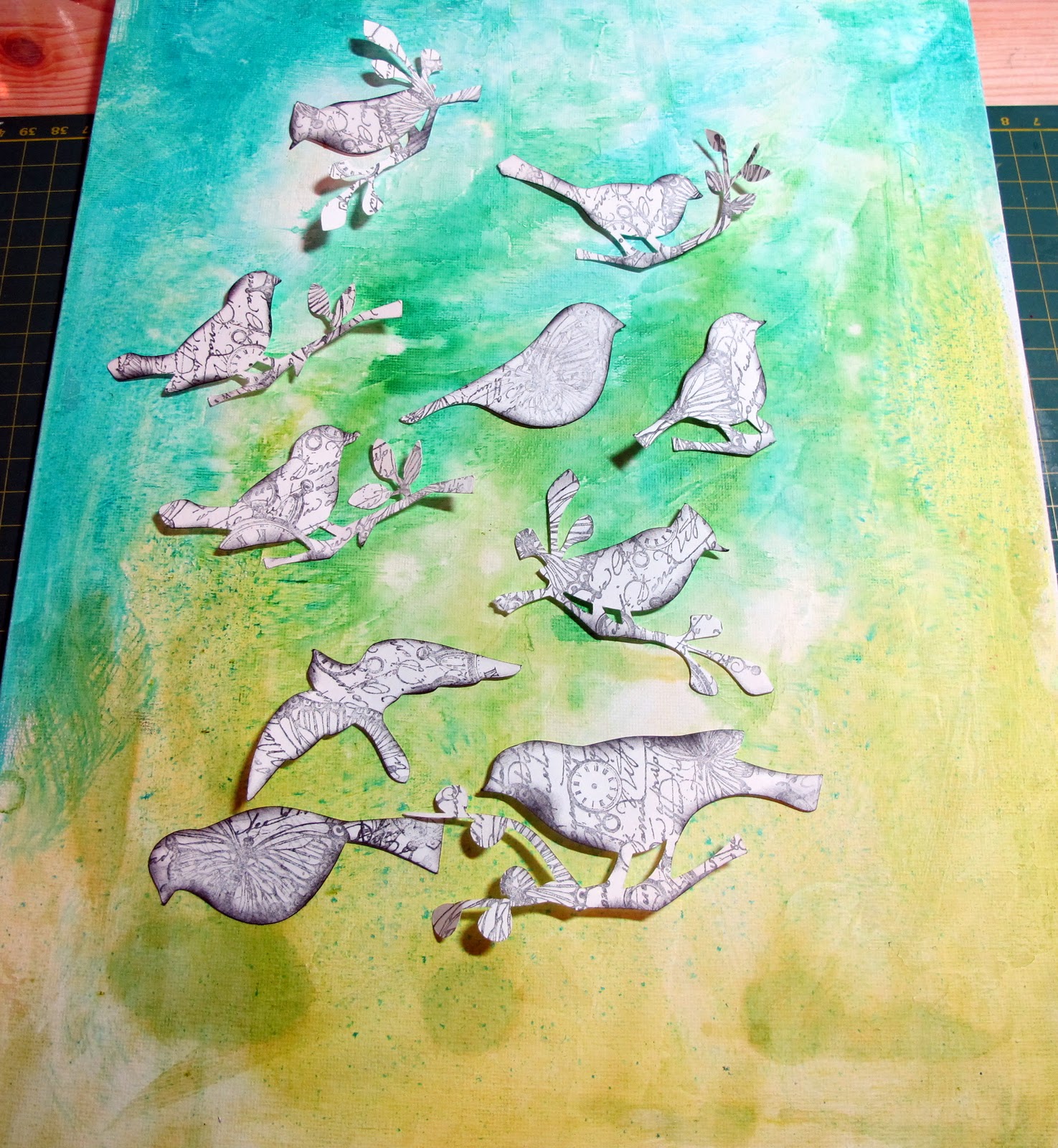 Peguei aquele primeiro desenho que eu mostrei la em cima e resolvi cortar no formato das nuvens e colei em cima das minhas nuvenzinhas...