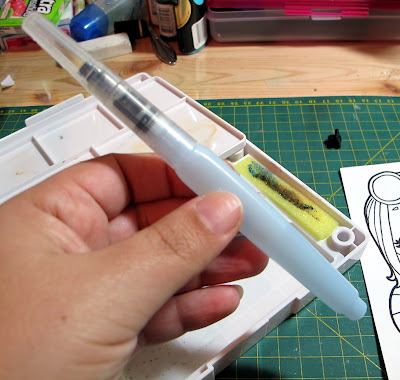 Pintei com crayon aquarela, usei Copics, usei canetinha comum e usei o conjuntinho da KOI de aquarela.