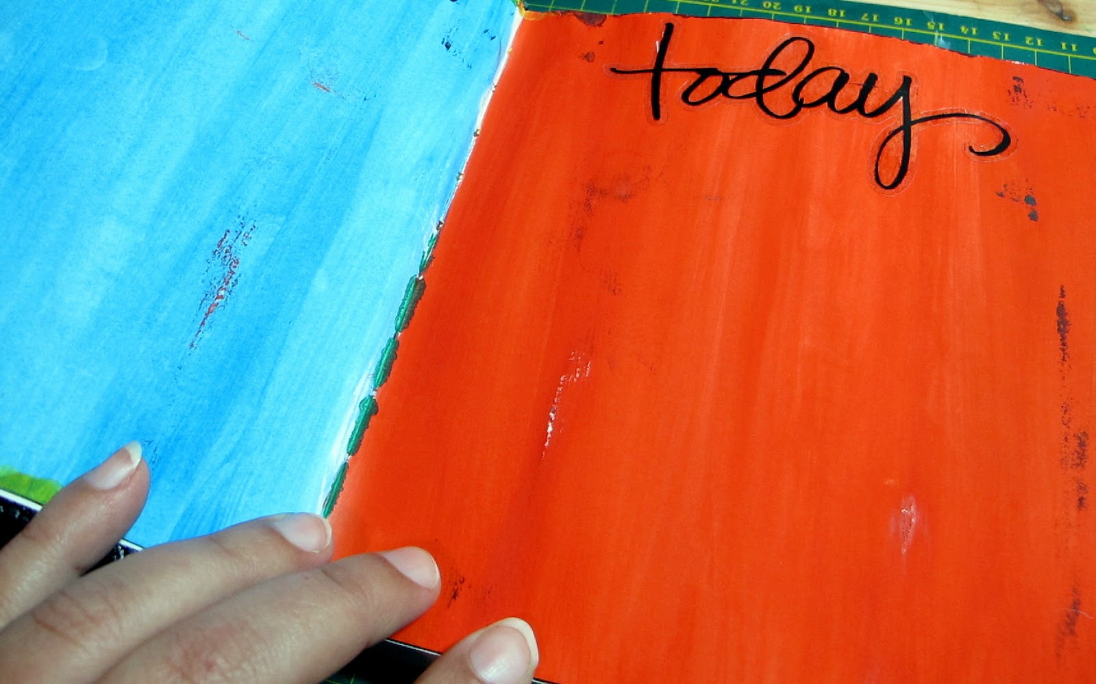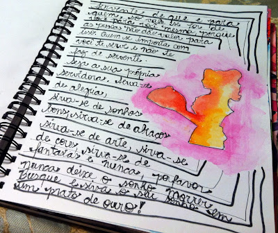 Bom, outra coisa que eu tenho costume de fazer e pegar o caderno que eu uso e pintar as paginas de fundo. So pintar, sem pensar em nada, so se jogar e brincar com cores.