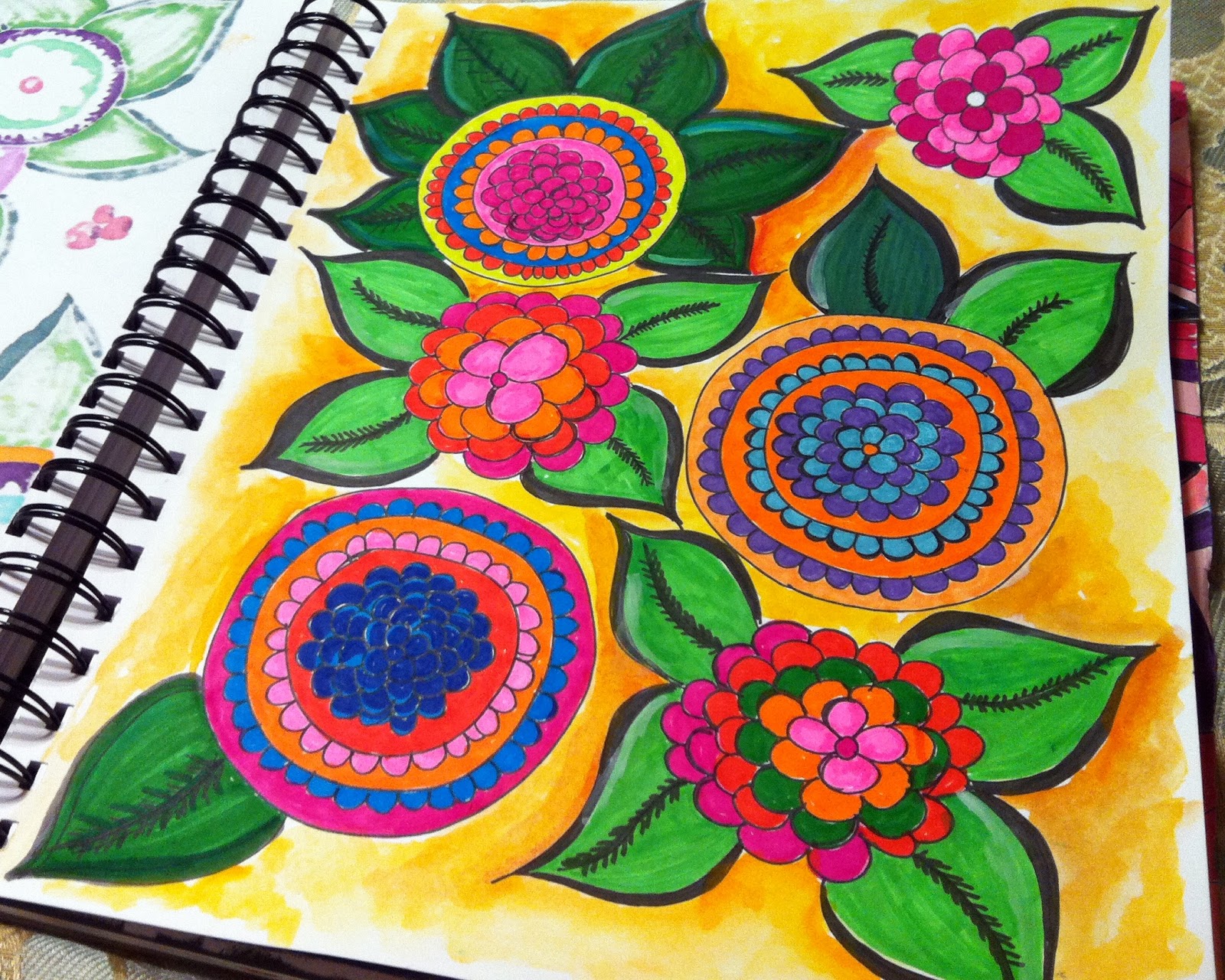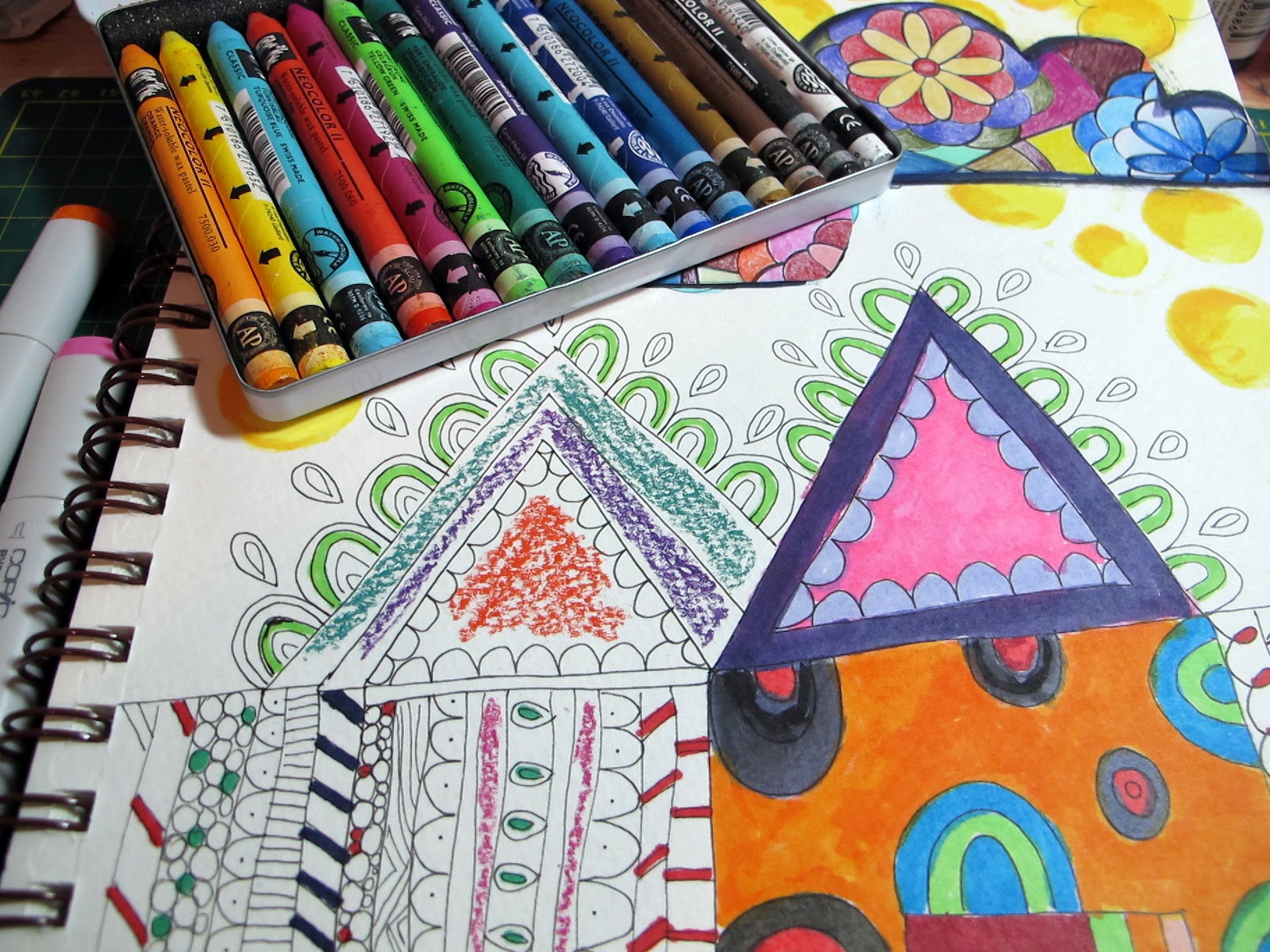 Eu tenho um livro aqui em casa que quando estou sem vontade de fazer nada complicado eu sento na frente da TV de vou pintando conforme o que aparecer Pego o lapis de cor na caixinha, nem olho, so pego um lapis e vou pintando. Nao tem objetivo algum apenas deixar as cores te escolher...heheh