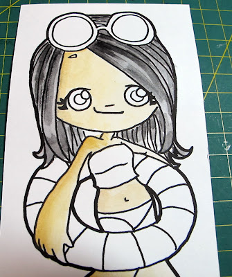 E aqui esta a minha mocinha que pintei antes... ai que vontade de praia minha gente....ta vendo como as coisas tem sempre um sentido...aqui ta um frio preguicoso e engordativo viu... :)