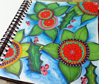 Essa eu pintei com copics, e o azul em volta das flores foi aquarela - aquele conjunto da KOI no qual eu me apaixonei.