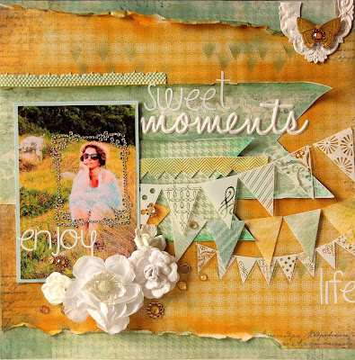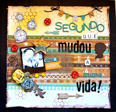 Algumas dicas, comece pela foto e use um tapete neutro que possa "conviver" com as diferentes cores, padrões e materiais que serão incluidos. As camadas podem ser, além de papéis de scrapbook, tinta spray, carimbos de fundos ou tipográficos, rendas, papel vegetal, papel rendado (