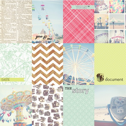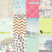 - Sobreposição e colagem de estampas: mistura de diversas estampas chamativas! A idéia aqui é menos um patchwork e mais um "conflito" de estampas. Um verdadeiro desafio para as scrappers não? Mas se seguirmos a linha do que a Michelle Clement fez com o uso dos papéis 15 x 15, tudo vai se tornar mais fácil né? hehehe