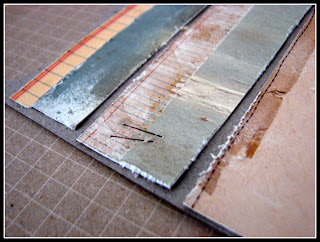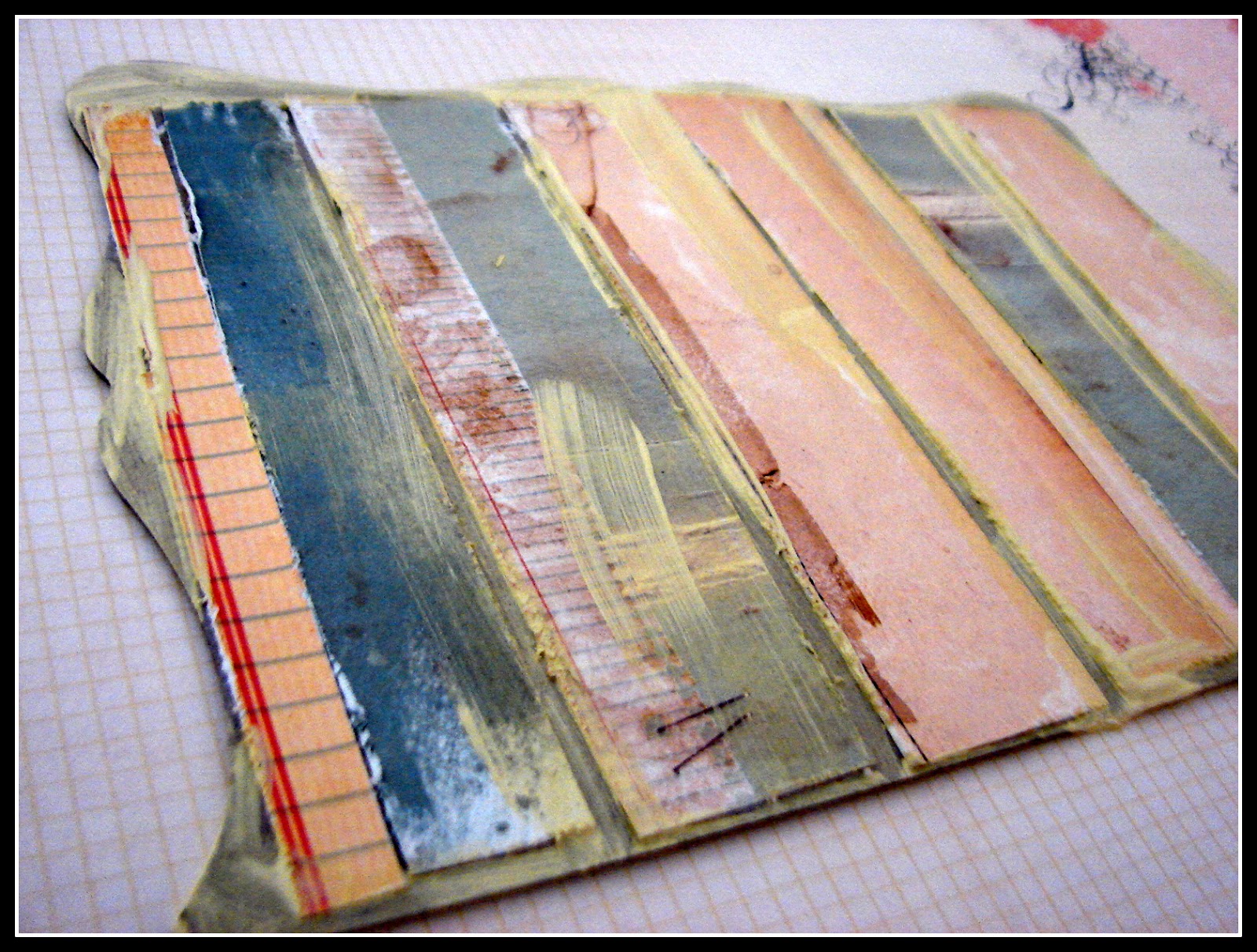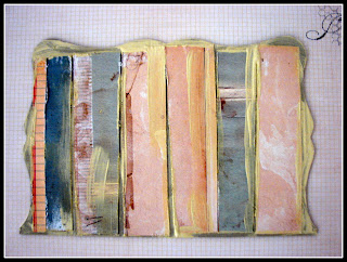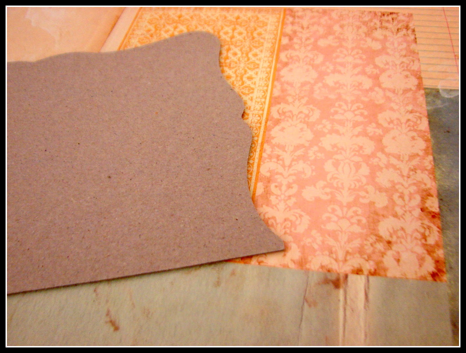 Comece recortando tiras de papel para cobrir o chipboard. Tiras em