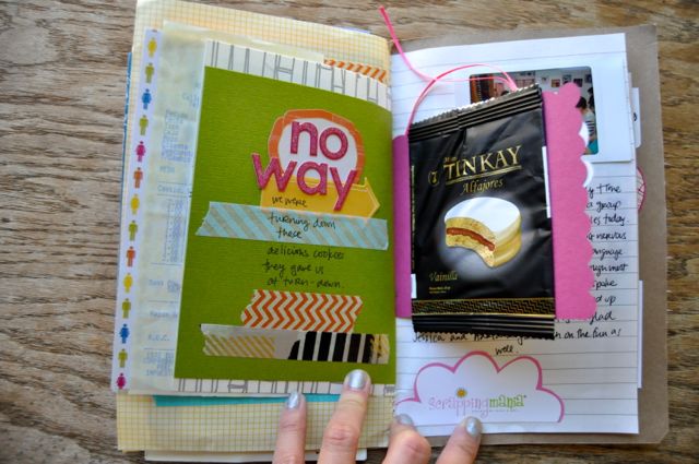 Abaixo o super exemplo da Amy Tangerine que sempre inclui muita memorabilia em seus projetos! Tanto os day books como no project life dela.