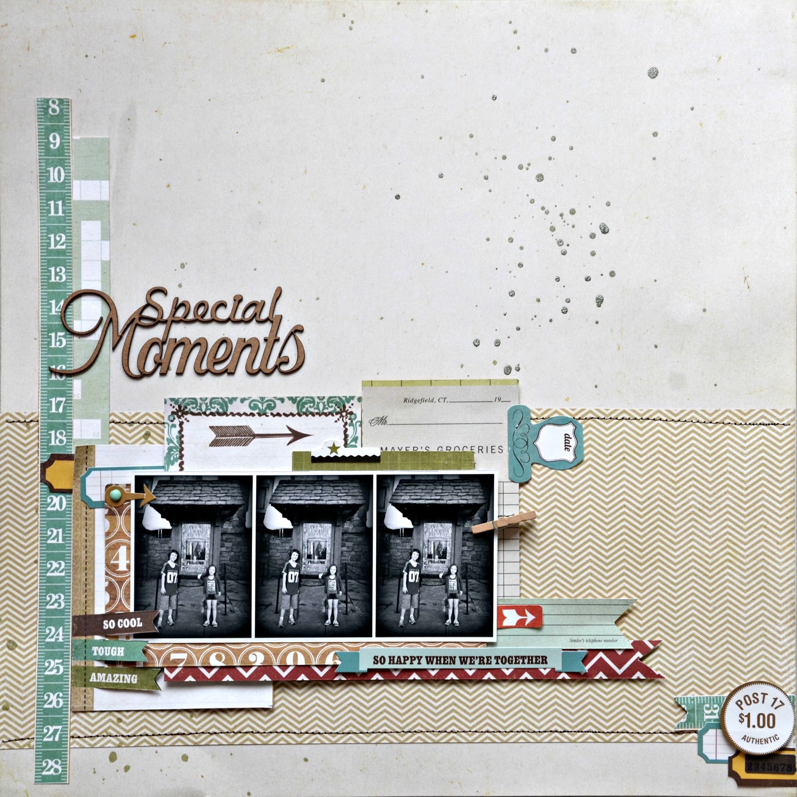Incluir memorabilia pendurado (banner) ou amarrado como um embellishment.