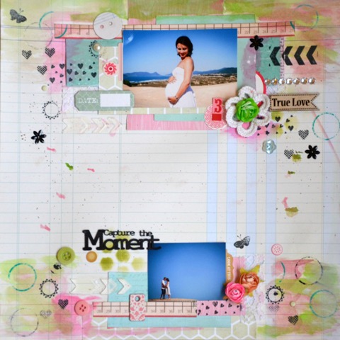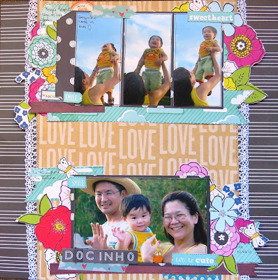 O layout acima da Nicole tomou partido dos journaling cards como espaço para incluir embellies! Ficou lindo e fofo não é mesmo?
