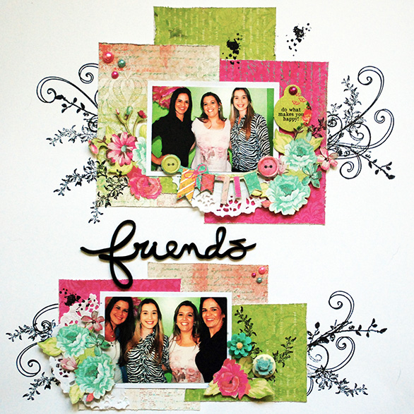 Estou apaixonada pelas páginas super girly da Nicole e dos detalhes espetaculares que ela inclui nos projetos dela! Destaque para o card em tamanho 10x15 que ela usou de um modo bem divertido!