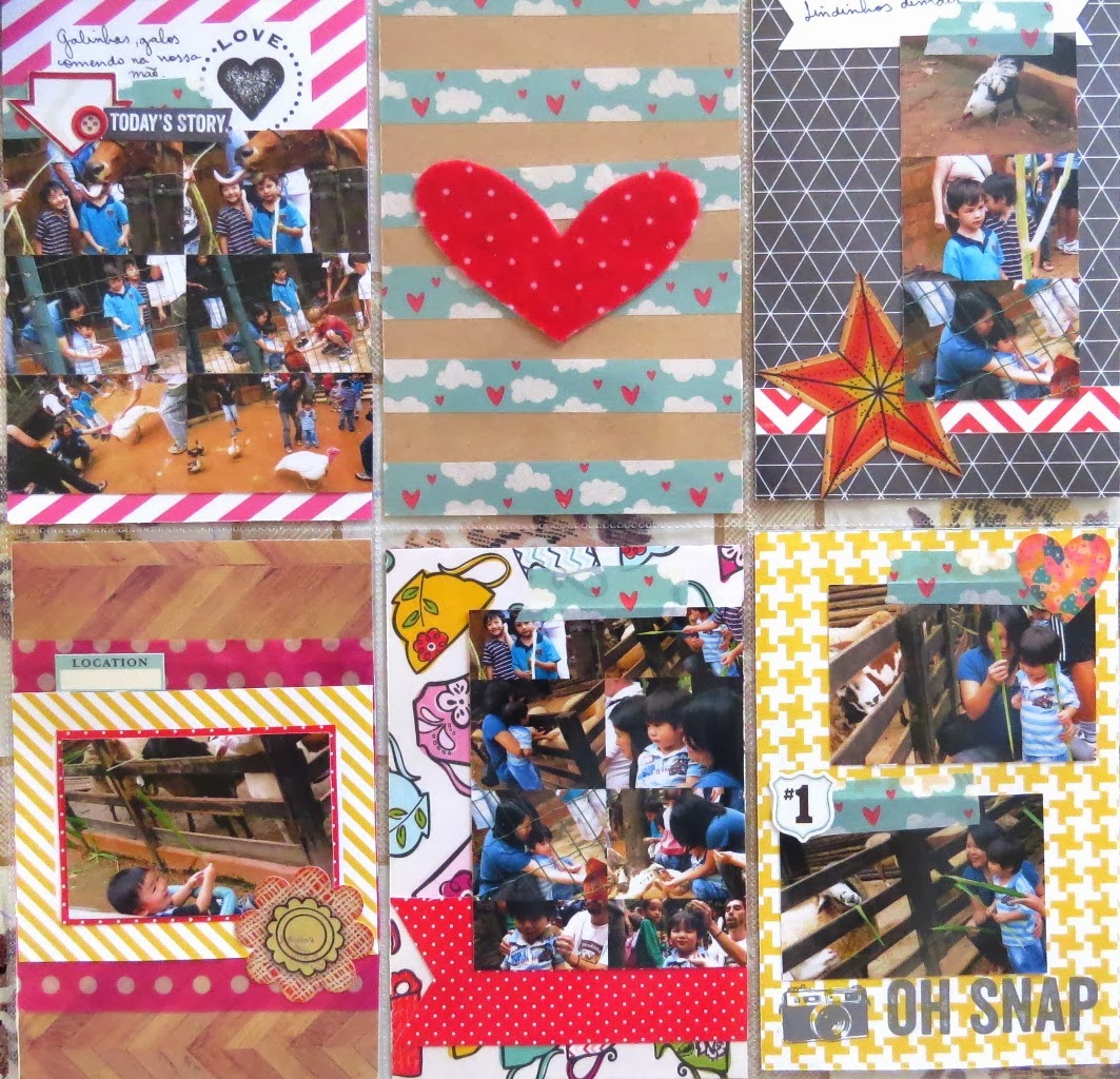 A mistura dos vários modelos de plásticos protetores com as páginas tradicionais de scrap traz um encanto e completa a estória! Esse é o grande valor do PL!