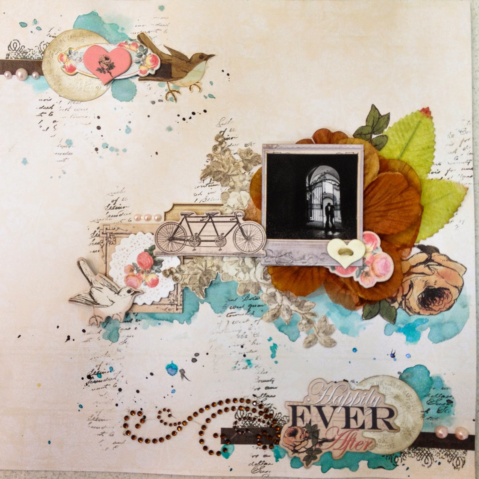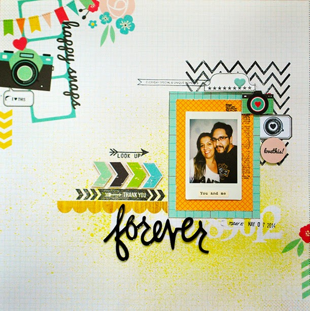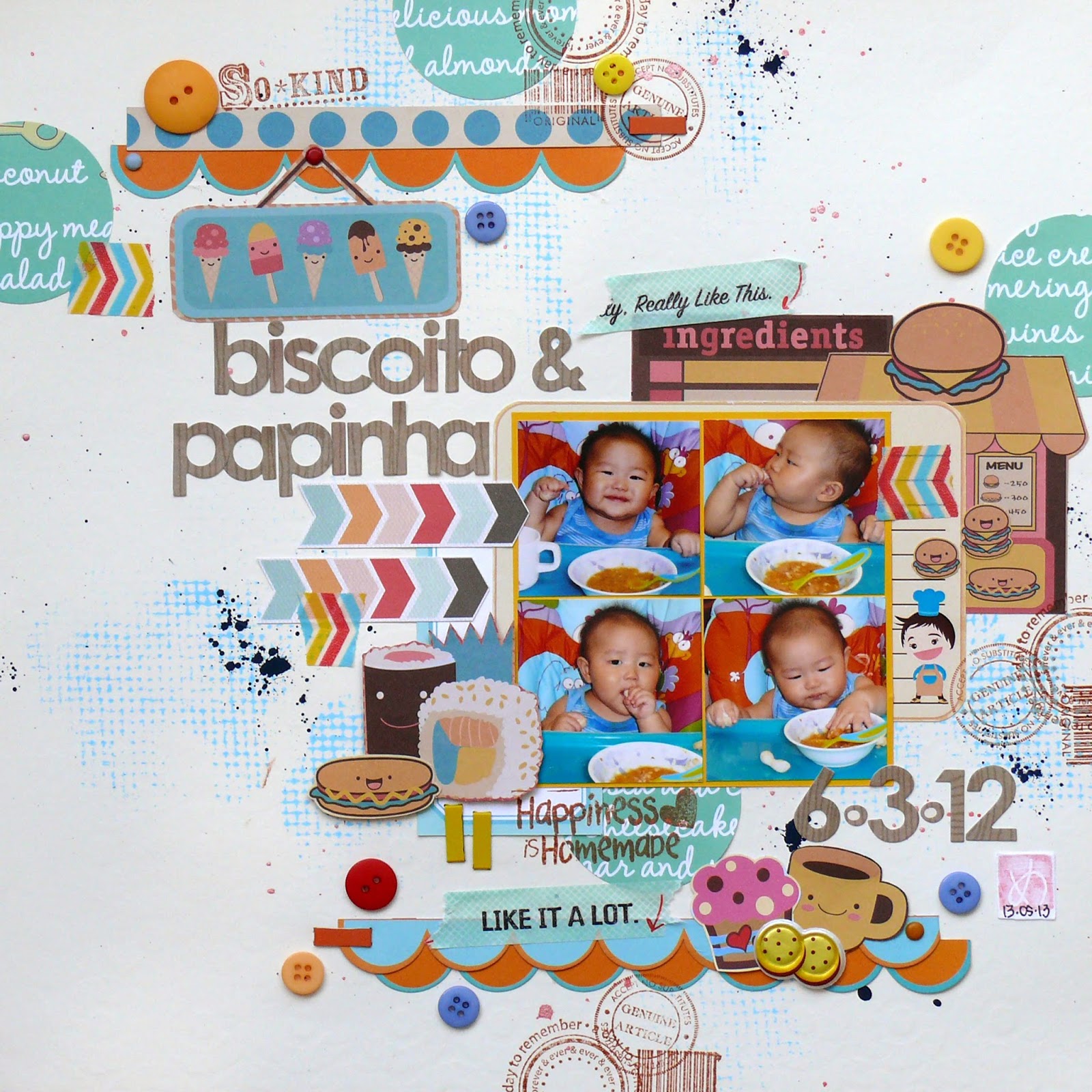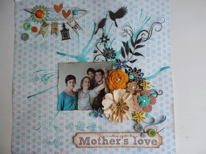 Esse mês a escolhida é uma página com um fundo trabalhado em aquarela, tendência no scrap atualmente. A harmônia das cores também chama a atenção, além de adorarmos o mix de flores. Isso prova como fica lindo misturar flores compradas prontas e flores feitas por nós mesmas.