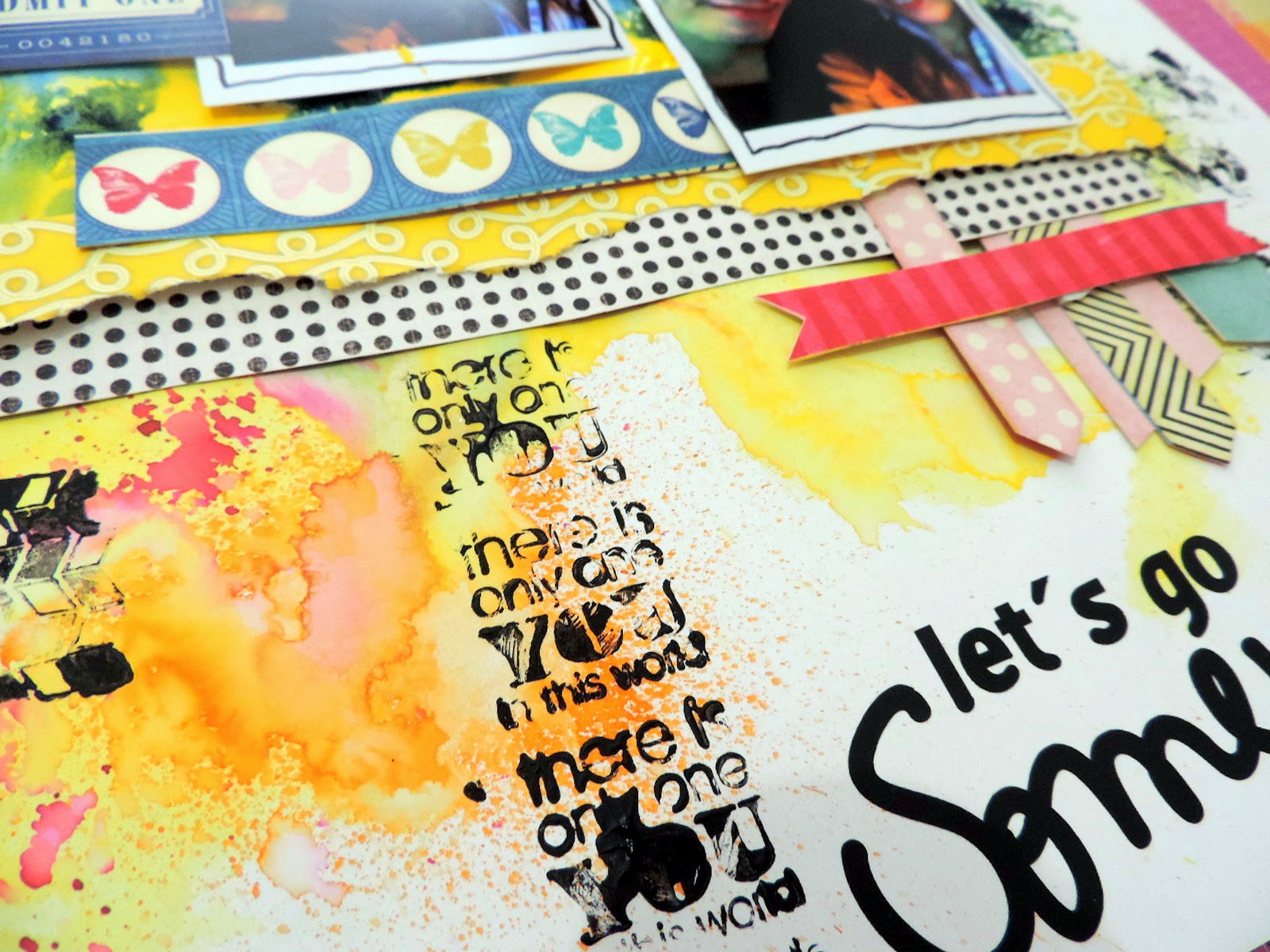 Pense em liberdade. Isso é mixed media, um estilo em que tudo pode ser usado. Além dos tradicionais materiais de scrapbooking, aqui encontramos todos os tipos de tinta, canetas, fibras, técnicas, misturas, formas, sobreposições e o que mais a imaginação alcançar. Normalmente o fundo dos trabalhos é muito rico e cheio de intervenções. Vemos muito o uso do estêncil e da massa de modelagem, além de muitos elementos colados. Este é um estilo que caminha em direção à arte e vai além do objetivo de preservação das memórias. Tanto que muitas adeptas das técnicas de mixed media se aventuram e fazem trabalhos em telas e em art journals. Expressar suas experiências, seu momento, sua visão do mundo e suas idéias é o que impulsiona essas scrappers.