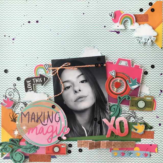 Temos um novo desafio na área! Vejam só que sketch lindo o desse mês! Também temos vários trabalhos diferentes, cheios de inspiração para compartilhar com vocês. Muitas flores foram usadas além de chipboard e vários elementos como pequenos desenhos fofos recortados. Queremos saber quais são os enfeites preferidos de vocês, com quais vocês mais se identificam, quais são os mais fáceis e usar? Contem para a gente, ok? Ficaremos ansiosamente esperando as participações de vocês.